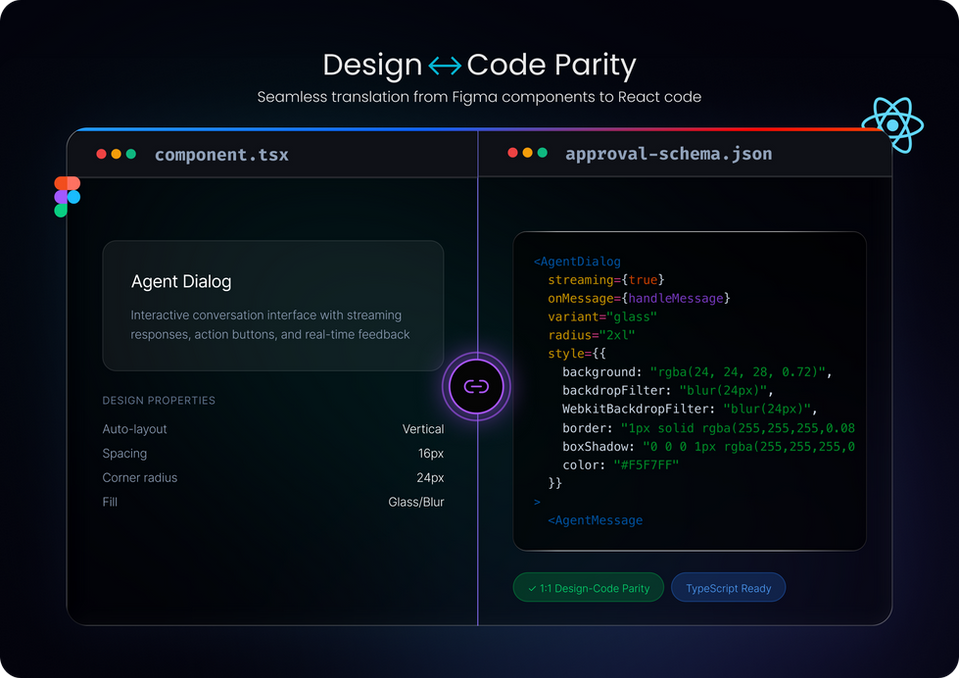 To help engineering teams implement these interaction patterns consistently, we helped translate the design principles into a structured developer framework. This led to the Agentic Display Interface (ADI) — a schema-based approach that allows agents to communicate through predictable UI components rather than raw text outputs.